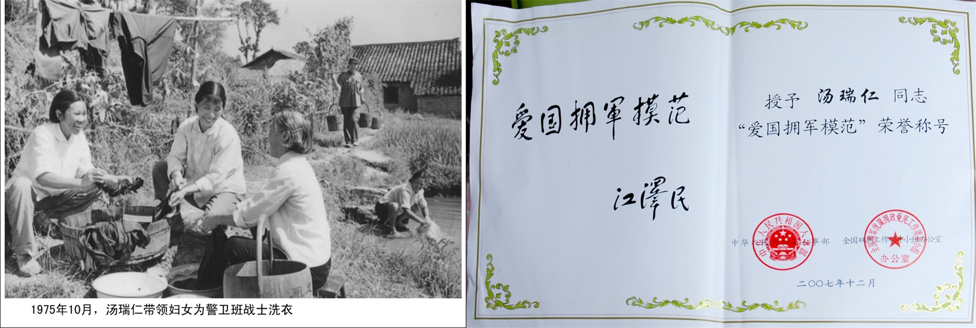 悠悠擁軍情,拳拳慈母心。昔日,湯瑞仁是個(gè)“模范軍屬”,曾和毛主席合過(guò)影,是一個(gè)“幸?!钡娜?;如今,湯瑞仁是個(gè)“愛(ài)國(guó)擁軍模范”,成為享譽(yù)全國(guó)的女能人,這塊榮譽(yù)的背后融入了全家三代整整70多年的心血。