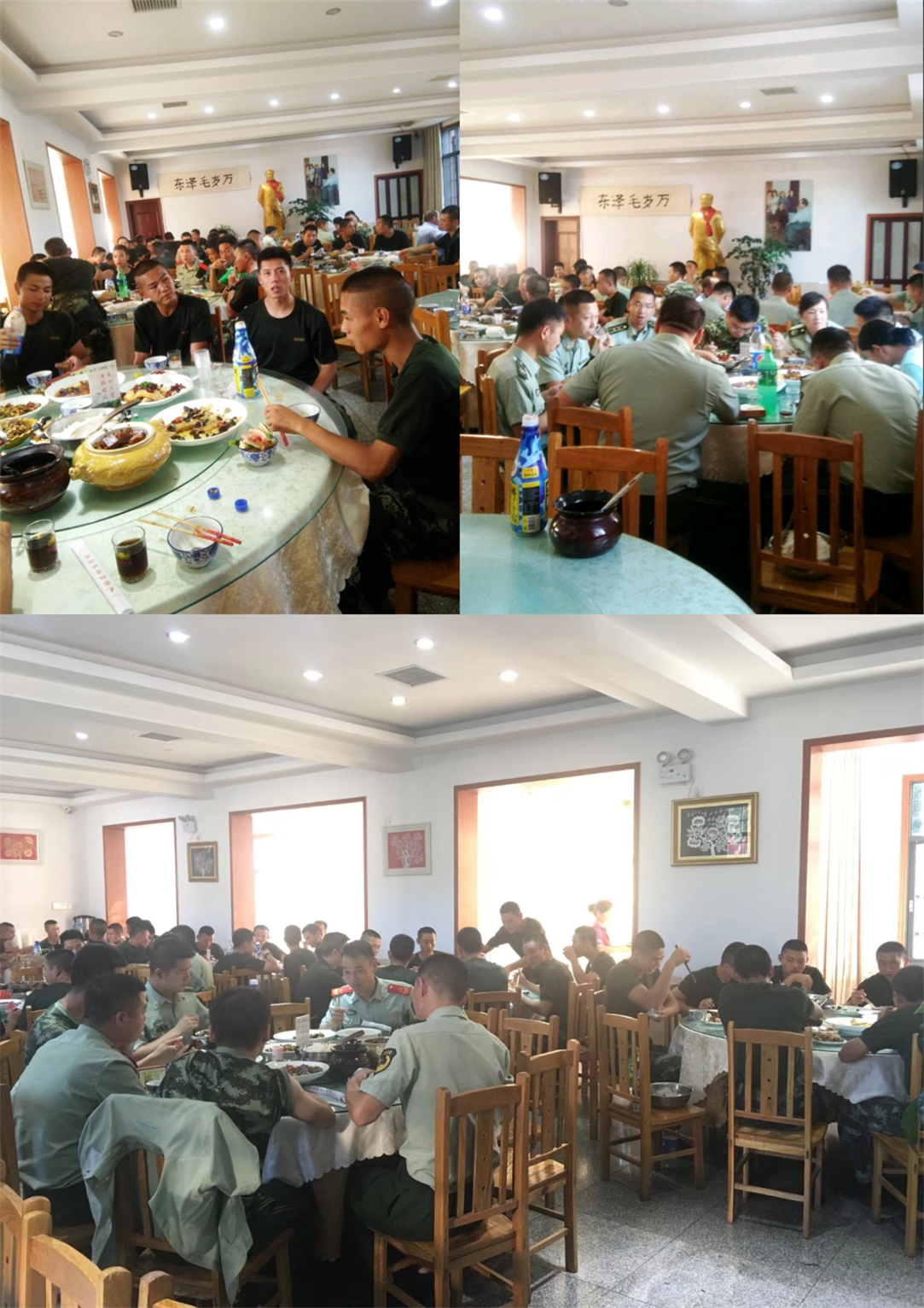 (2018年7月25日,消防、武警官兵歡聚在毛家飯店)