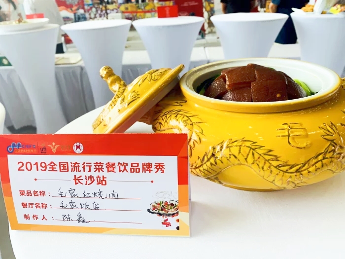 在本屆2019全國流行菜餐飲品牌秀(長沙站)上,毛家飯店的毛家紅燒肉被評選為“最佳特色菜點”,榮譽墻上又增添了一個獎項。毛家紅燒肉被大眾所認可、所喜愛,不僅成為了毛家飯店的經(jīng)典菜品,而且成為湘菜中的一道精品菜肴,走出湖南,走向全國,乃至走向國際。