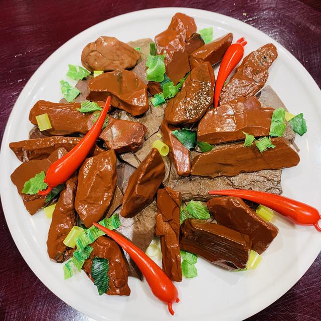 除了“萬人同吃長壽面”的活動,毛家集團還準備了一個“大驚喜”,那就是紅石館。紅石館位于毛家文化博物館內,展廳入口處貼著一幅照片墻,正是毛家飯店創(chuàng)始人湯瑞仁的人生風雨歷程。入口處旁還設有一桌“美食盛宴”,仔細一瞧,原來是用各種形狀、色彩不一的美石“烹制”而成的石頭宴,不得不說還挺讓人有食欲的。