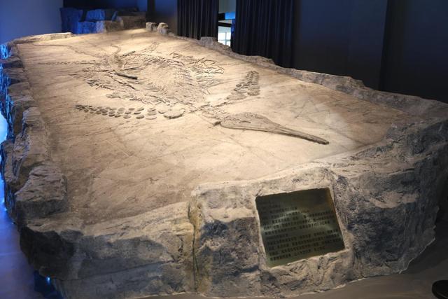 與海百合化石共同展示的還有魚龍化石,這幅展品是世界上最大的魚龍母子龍化石, 保存完整、龍體巨大、骨骼清晰突出,形態(tài)優(yōu)美,科研觀賞價值極高,可謂獨一無二的無價之寶,超億年的母子情深寫照。