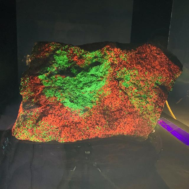 化石是自然界變化的記錄者,那么礦物石則是大自然給人類留下的瑰寶。紅石館內有一幅展品,名為“天外來客”,這塊熒光礦物石在燈光的照射下,呈現(xiàn)出一幅中國地圖的模樣,而我們韶山市的地圖旋轉180度后也是一幅中國地圖,這正是這塊礦物石的絕妙之處。恰巧也說明了一點,一代偉人的故鄉(xiāng)在冥冥之中與我們的祖國有著奇妙的聯(lián)系。