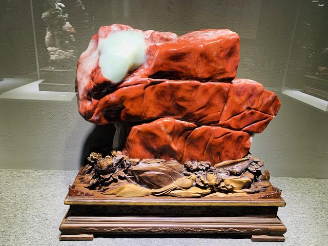 紅石館內不僅有化石、礦物石,還珍藏著數(shù)幅紅雞血玉藝術作品,“桂林雞血玉”的發(fā)現(xiàn),填補了中國沒有紅玉的空白。在紅石館內,可以看到用雞血玉創(chuàng)作而成,用以紀念偉人的藝術作品,雞血玉的紅色不僅與中國紅相呼應,也與毛家集團的紅色文化相契合。