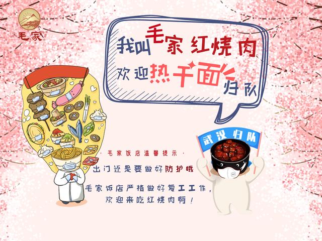 毛家紅燒肉溫馨提示: 我們?nèi)孕枰骱每谡郑岣邔?duì)病毒的防范意識(shí)。這是一場(chǎng)持久戰(zhàn),不到最后,絕不輕言勝利! 毛家飯店經(jīng)過(guò)高頻率消毒、嚴(yán)格把控食材安全、強(qiáng)化送餐細(xì)節(jié)三大環(huán)節(jié)準(zhǔn)備下,全國(guó)毛家飯店都正式復(fù)工啦!一份美食,希望可以帶給你元?dú)馀c力量~