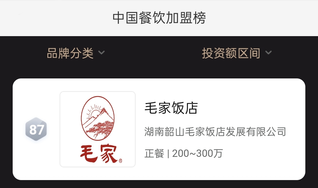 對(duì)于毛家飯店來(lái)說(shuō),能夠入圍2020年度中國(guó)餐飲加盟榜是一種認(rèn)可,更是一種鼓勵(lì)。1987年至2020年,從一家不起眼的小飯店到如今在全國(guó)擁有數(shù)家連鎖加盟店的湘菜品牌,毛家飯店憑借優(yōu)秀的品牌實(shí)力和科學(xué)合理的經(jīng)營(yíng)發(fā)展理念,成為眾多餐飲創(chuàng)業(yè)者的首選品牌。