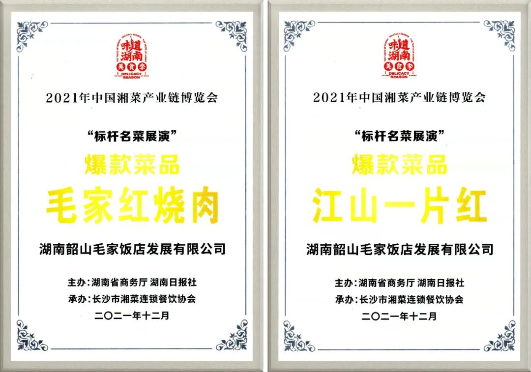 一份份沉甸甸的榮譽(yù),讓毛家人振奮不已,以更加飽滿的工作熱情投身工作中,也更加堅(jiān)定了“講真求實(shí)做好菜”的精神信念,不負(fù)行業(yè)的認(rèn)可,不負(fù)消費(fèi)者的信任。