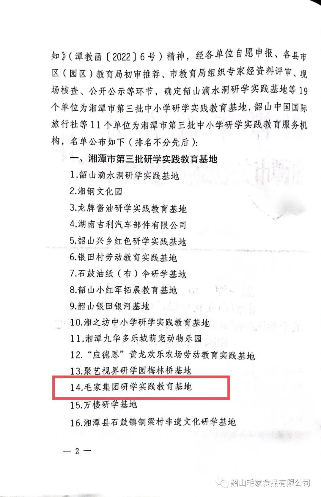 近日,湘潭市中小學(xué)研學(xué)實(shí)踐教育基地評(píng)審結(jié)果公布,在全市范圍內(nèi)共評(píng)審出中小學(xué)研學(xué)實(shí)踐教育基地19家,毛家集團(tuán)研學(xué)實(shí)踐教育基地入列。