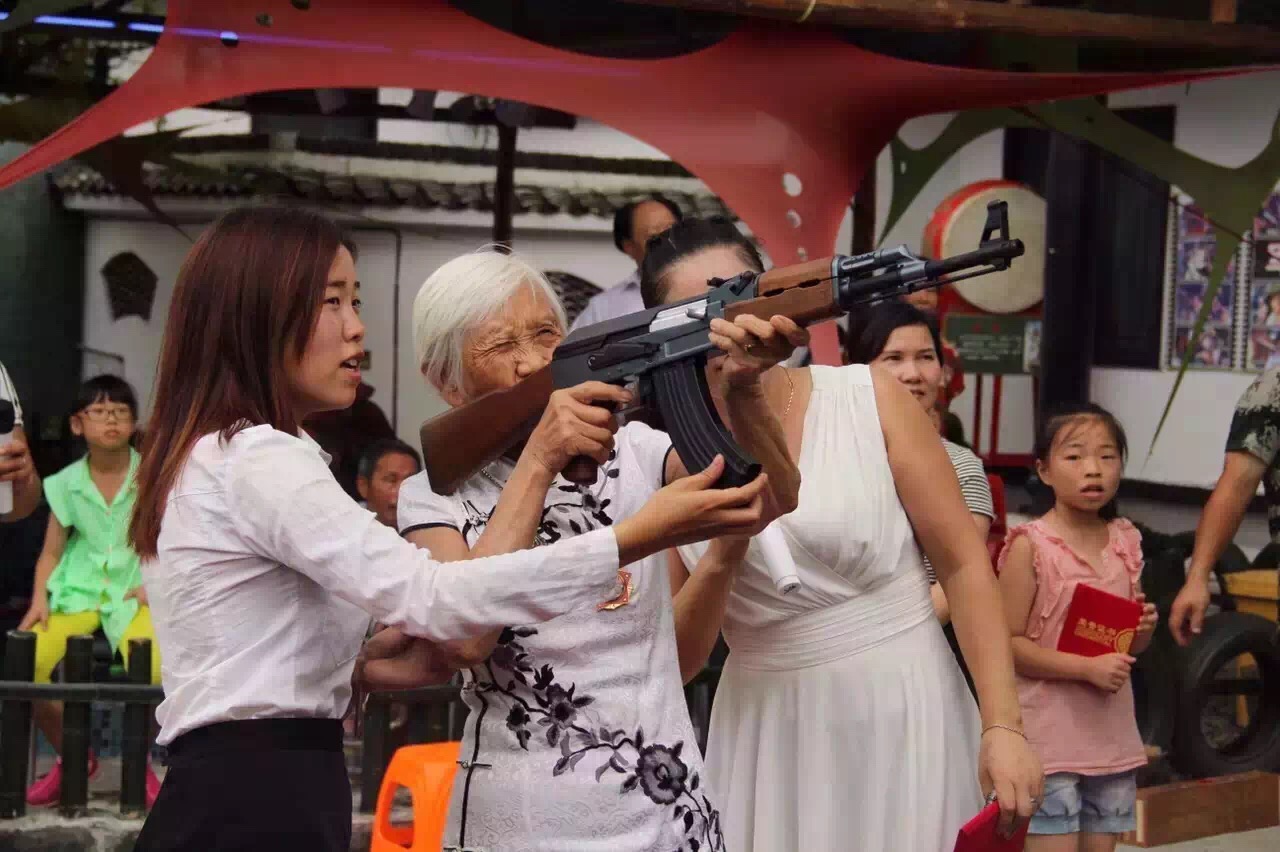當天舉行頒獎典禮的“戰(zhàn)地攝影比賽”是韶山軍事樂園推出的一項參與性極強的活動,游客們身著軍裝,手持刀槍,在烽煙四起的“戰(zhàn)壕”中發(fā)揮創(chuàng)意,盡情拍攝情景照片。