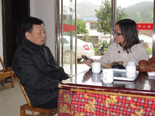 新聞廣播記者采訪韶山村現(xiàn)任黨支部書記毛雨時