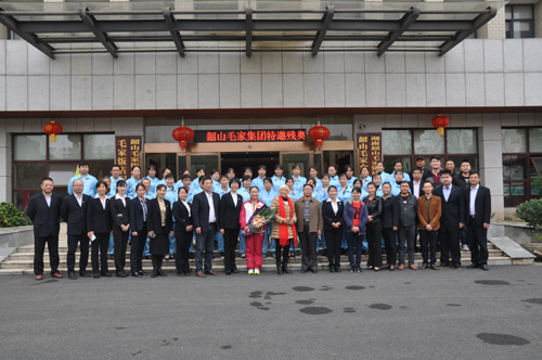 當(dāng)小轎車停落廠門口,譚玉嬌剛下車,鞭炮就響起來,一位靚麗的女職工即步向前獻(xiàn)上了一束鮮花,夾道歡迎她的工友們掌聲齊鳴,早在等候的韶山高新區(qū)領(lǐng)導(dǎo)丁浩書記和毛家集團(tuán)法人代表毛桃芝與她親切握手,毛家集團(tuán)創(chuàng)始人湯瑞仁老人與她緊緊擁抱。
