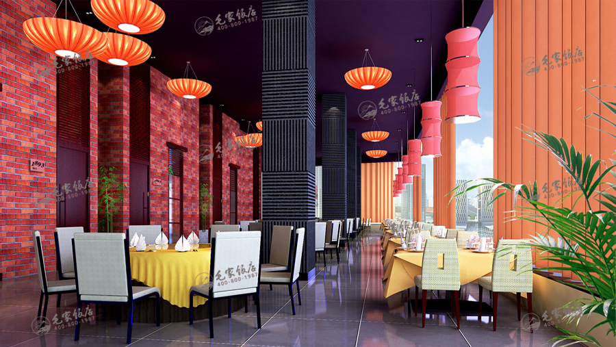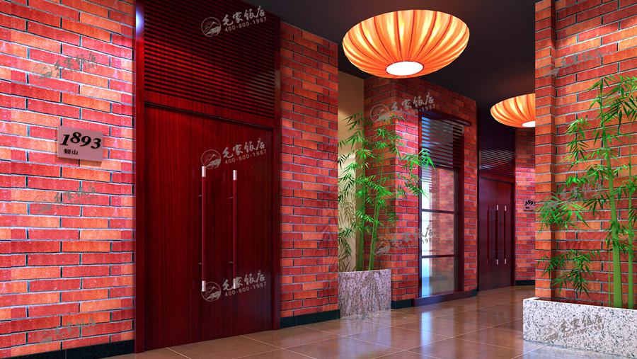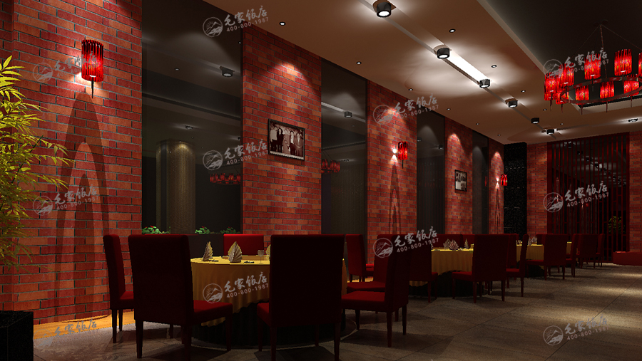 毛家飯店歷經(jīng)三十余年的發(fā)展,在空間設計上也經(jīng)過了幾個版本,從最初的具有韶山地方風情的民俗版,在后的新概念版都是根據(jù)市場的需求而專項設計的。 紅磚,灰墻,青竹,紅燈……,毛家的文化空間包容了簡約的現(xiàn)代元素和時尚氣息,也融合了濃厚的毛家紅色文化,使消費者的感性度對毛家有的認知和升華,同時也營造了一份雅俗相融的文化特色空間。