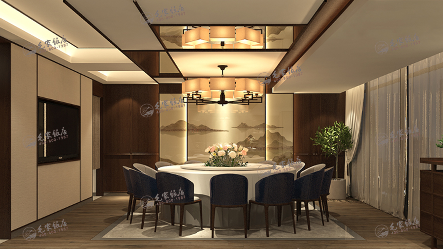 以現(xiàn)代中式風格為主,點綴以綠植為主,打造舒適商務氛圍,為前來消費的顧客提供一個舒適有檔次的就餐環(huán)境。