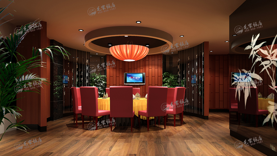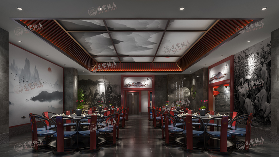毛家的文化空間,基于對中國傳統(tǒng)文化及紅色文化深刻的皈依,在傳統(tǒng)的基礎上又恰到好上的融合了現(xiàn)代的設計元素,將時尚與餐飲文化相結合將毛家企業(yè)文化融于空間之中,讓顧客在品嘗美味的同時也能口味出毛家獨特企業(yè)文化的滲透力。大廳及包房文化把主席的革命足跡巧妙的融入到其空間中,整體的文化布置將營造一個個性、人文、張揚而又不失沉穩(wěn)的餐飲空間,并使毛家獨特的毛文化形成更多可以慢慢品的內(nèi)容。