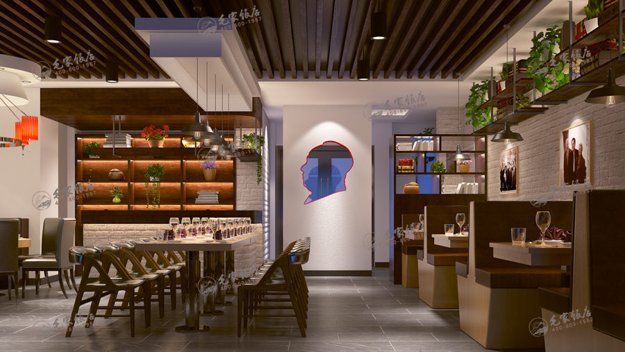 具體針對小面積的店鋪,吸收工業(yè)風的裝飾特點,結合傳統(tǒng)材料,在工業(yè)風的基礎上,用材質的溫馨和質樸來營造時尚溫馨的就餐環(huán)境。
